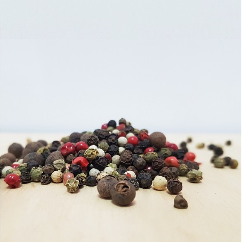 Состав: перец черный целый, перец душистый целый, перец белый целый, перец зеленый