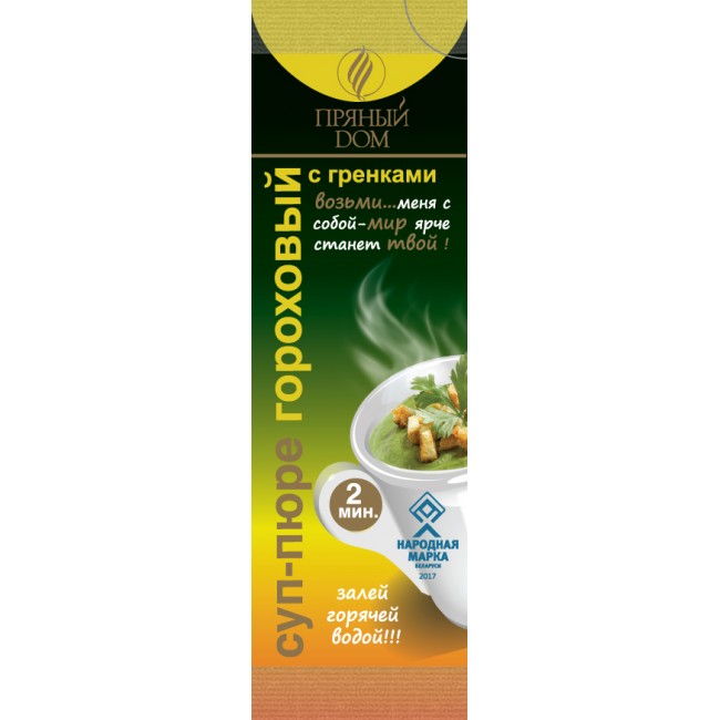 Легкий, вкусный и аппетитный "Суп-пюре гороховый с гренками" создан в соответствии с лучшими традициями и вкусовыми предпочтениями потребителей, для приготовление которого Вам понадобится 5 минут.